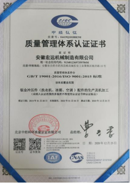 ? 安徽宏遠(yuǎn)機(jī)械制造有限公司(原合肥徐恒工貿(mào)有限公司),創(chuàng)建于2003年12月,現(xiàn)座落于肥西縣桃花鎮(zhèn)長(zhǎng)安工業(yè)聚集區(qū)楊井路15號(hào)。目前公司占地面積30余畝,生產(chǎn)廠房?jī)蓷潱偨ㄖ娣e12000平米,綜合辦公樓一棟,建筑面積3000平米,公司2019年年產(chǎn)值2.45億元。我公司是以鈑金沖壓、加工為主的生產(chǎn)企業(yè),擁有完整的精加工檢驗(yàn)體系。通過近年的發(fā)展,公司已由原先單一的沖壓加工生產(chǎn)模式,轉(zhuǎn)化為模塊化、多業(yè)務(wù)鏈的汽車、家電零部件的制造企業(yè),目前公司產(chǎn)品品種已涉及家電,汽車零配件近百種。 公司擁有大、中、小型沖壓及焊接機(jī)械設(shè)備近100余臺(tái)套,其中630T-1200T大臺(tái)面架框液壓機(jī)(移動(dòng)工作框臺(tái)面)5臺(tái),氣動(dòng)100T-250T沖床20余臺(tái),63T壓力沖床10臺(tái),25T-40T壓力沖床20余臺(tái),315T液壓機(jī)4臺(tái),300T液壓機(jī)4臺(tái),日本松下350-500電焊機(jī)20臺(tái),電焊機(jī)、二氧化碳?xì)怏w保護(hù)焊機(jī)、氬弧焊機(jī)合計(jì)10臺(tái),大小自動(dòng)手動(dòng)剪板機(jī)5臺(tái),維護(hù)設(shè)備車床、銑床、刨床、磨床、搖臂轉(zhuǎn)床等11臺(tái),引進(jìn)進(jìn)口機(jī)械手臂,實(shí)現(xiàn)全自動(dòng)線生產(chǎn),引進(jìn)空調(diào)面板全自動(dòng)生產(chǎn)線和噴涂生產(chǎn)線可供大中型企業(yè)鈑金制品零部件配套產(chǎn)品的加工。 公司現(xiàn)有員工245余人,高級(jí)技術(shù)人員30人,高級(jí)管理人員15人,擁有精密的加工設(shè)備、科學(xué)的管理模式和優(yōu)秀的企業(yè)文化。高素質(zhì)的員工隊(duì)伍、精良的加工和檢測(cè)設(shè)備,為公司產(chǎn)品提供可靠基礎(chǔ),2019年產(chǎn)值為24500萬元,預(yù)計(jì)2020年產(chǎn)值26000萬元。本公司的主要上游客戶為合肥美的暖通有限公司、惠而浦(中國(guó))電器有限公司、tcl家用電器有限公司、重慶美的有限公司、海爾電器(章丘)有限公司等,我司和上游客戶達(dá)成了常年的合作關(guān)系,并先后被評(píng)為上游客戶的優(yōu)質(zhì)供應(yīng)商。我司一直秉承誠(chéng)信第一、以質(zhì)取勝為宗旨。真誠(chéng)的歡迎各界客戶與宏遠(yuǎn)共同發(fā)展興旺。